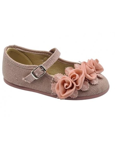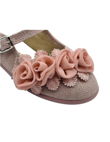 Merceditas de lino para niñas, marca Chuches, en color azul marino.