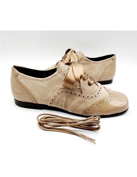 Zapatos blucher combinadoa ante y charol niñas Landos en color castoro, negro o gris.
