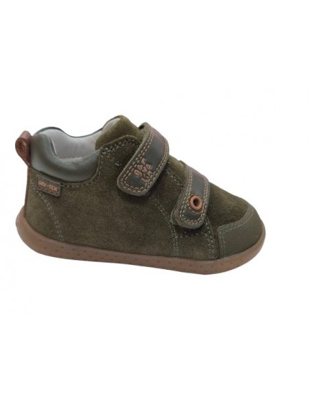 Botas barefoot respetuosas para niños, marca Mustang, en color kaki.