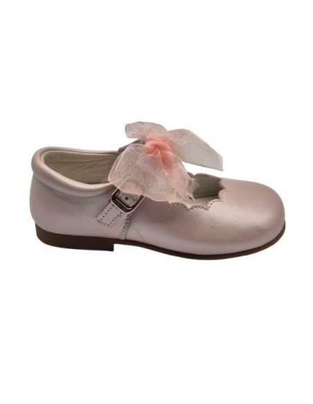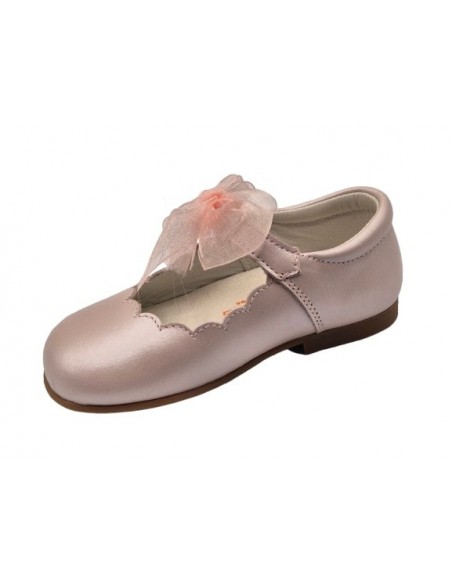 Merceditas de piel para niñas, marca Andanines, en color porcelana y rosa. Andanines