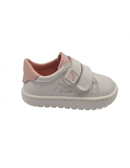 Zapatos respetuosos barefoot para niños unisex, marca Blanditos, en color blanco o blanco con rosa. Blanditos Atenas