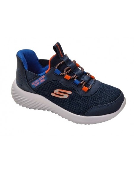 Zapatillas deportivas para niños, marca Skechers, con calce facil, en color azul marino. Skechers 403822L