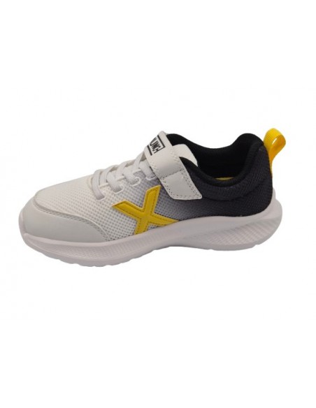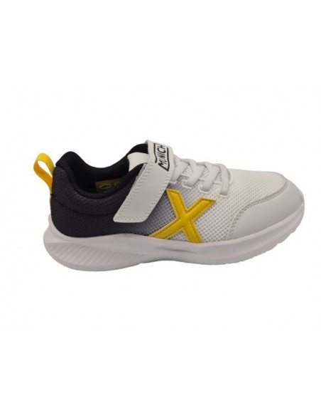 Zapatillas deportivas con velcro para niños, marca Munich, en color blanco con amarillo y azul. Munich 8935009