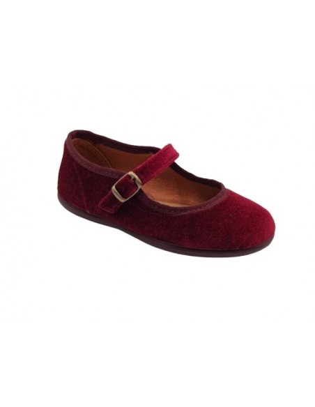 Merceditas de terciopelo con hebilla para niñas, marca Chuches, en color burdeos, marino, negro o taupe. Chuches 903001